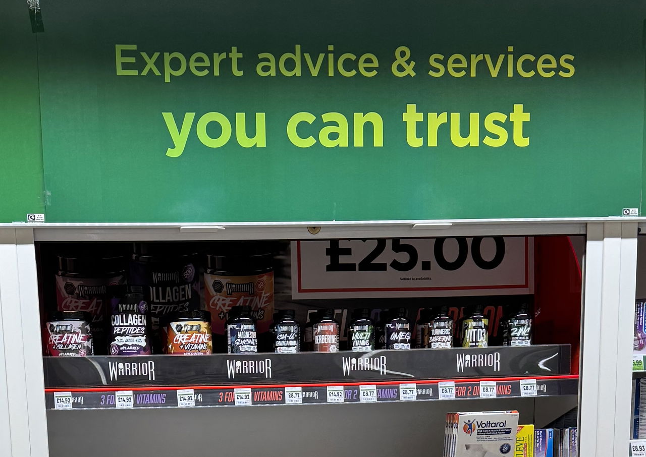 Pop into ASDA Pharmacy, grab Warrior creatine and a few bars and make the next month easier than the last one.