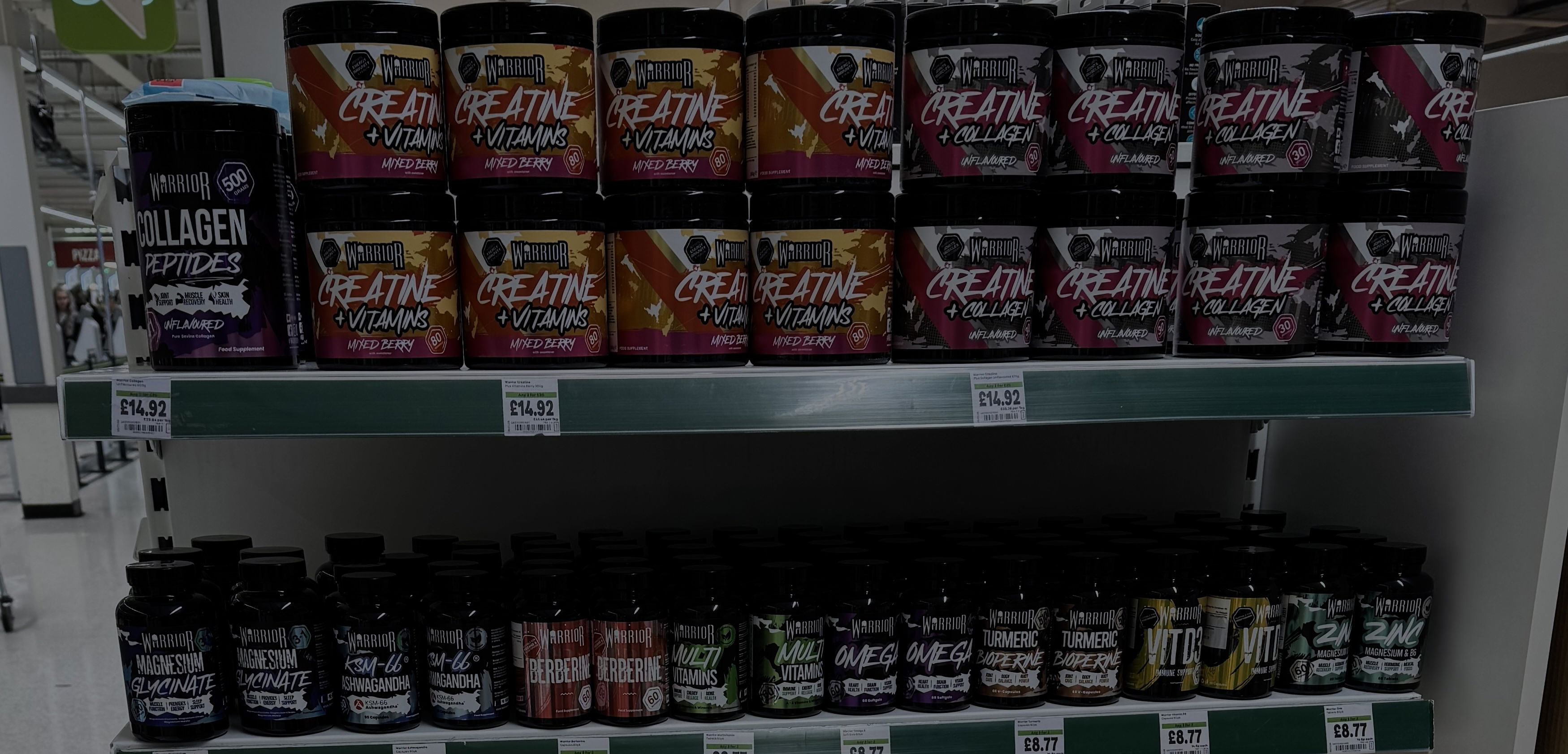You can now buy Warrior Creatine, Creatine Plus, Vitamins and Bars at ASDA Pharmacies.