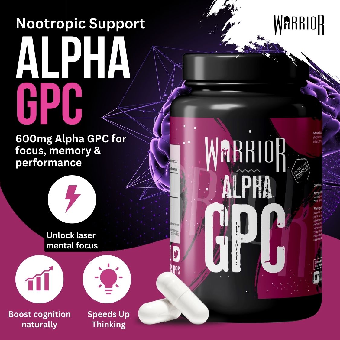 Made in the UK, in GMP-certified facilities, Warrior Alpha GPC is clean, vegan-friendly, and engineered for high-impact results — without compromise.