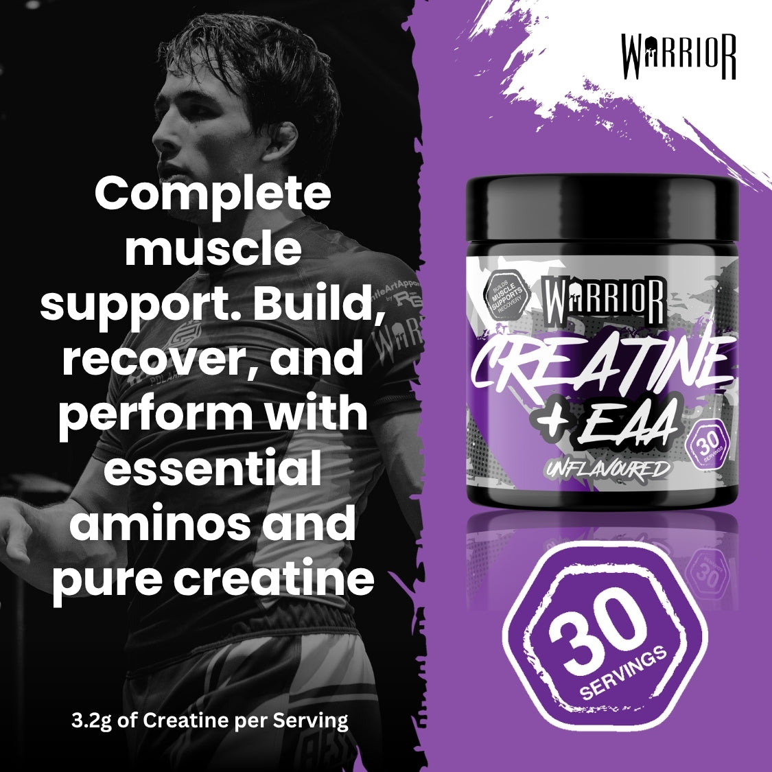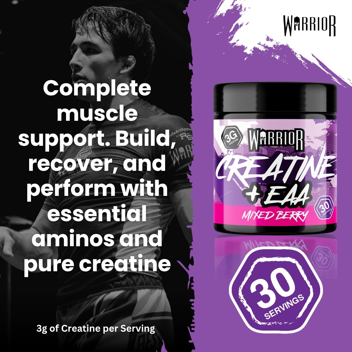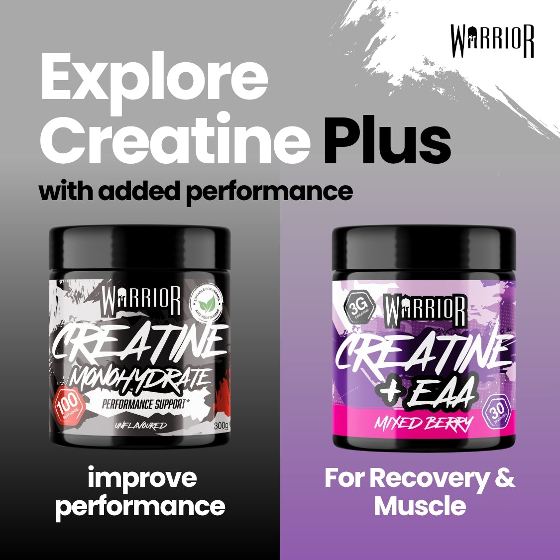 Dominate your workouts with Warrior Creatine Plus EAA — the ultimate all-in-one formula for explosive strength, faster recovery, and lean muscle gains.