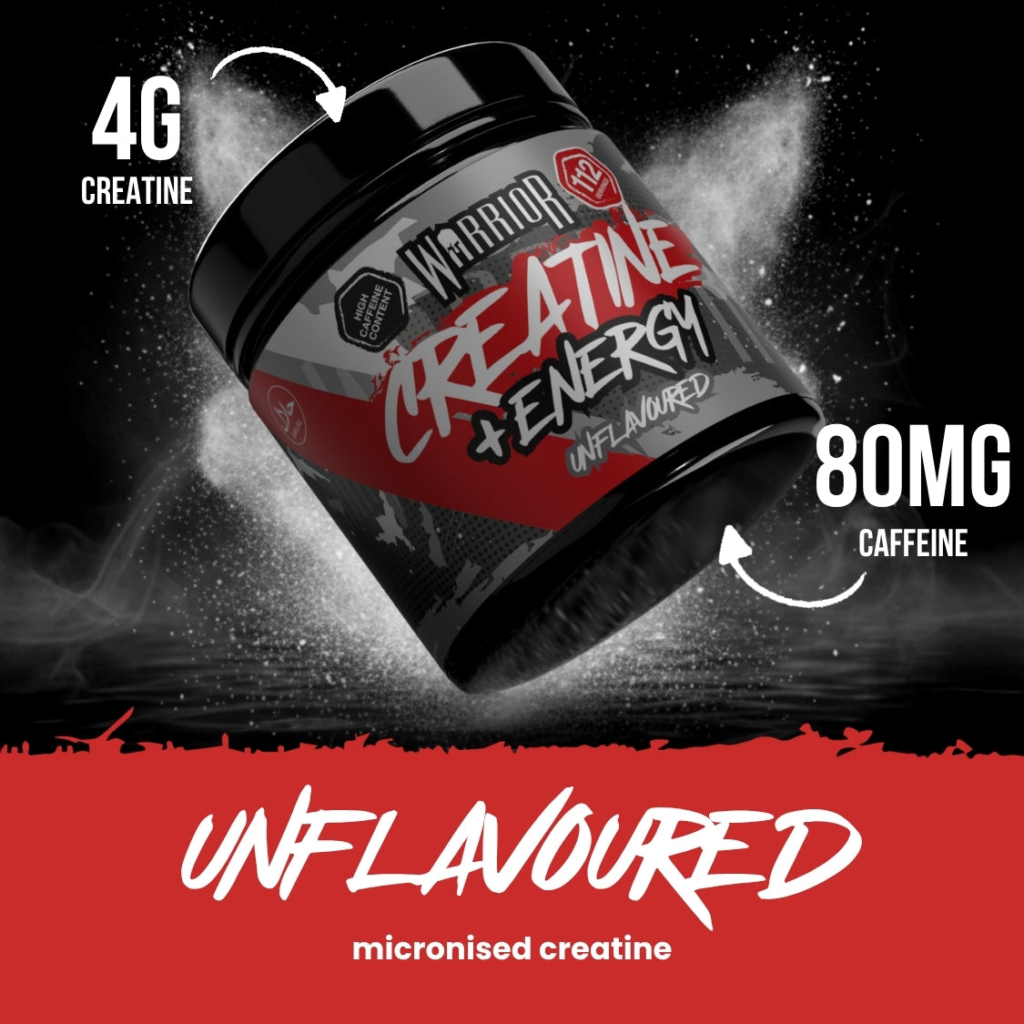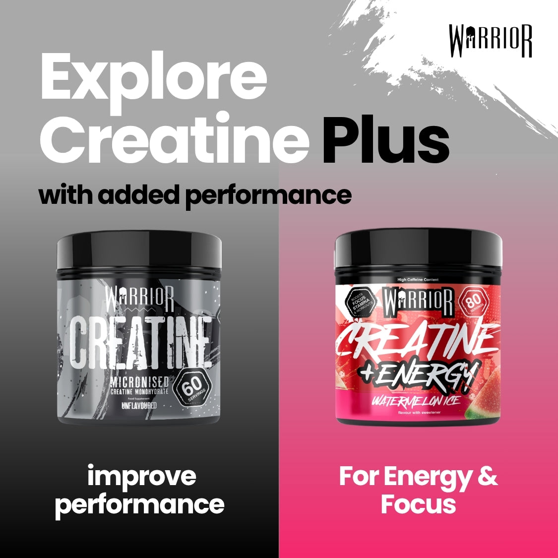 Smash PBs and level up your workouts with Warrior Creatine Plus Energy — pure Creatine Monohydrate + Natural Energy Complex for strength, stamina & recovery.